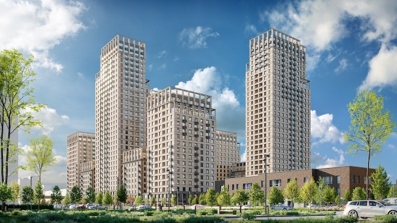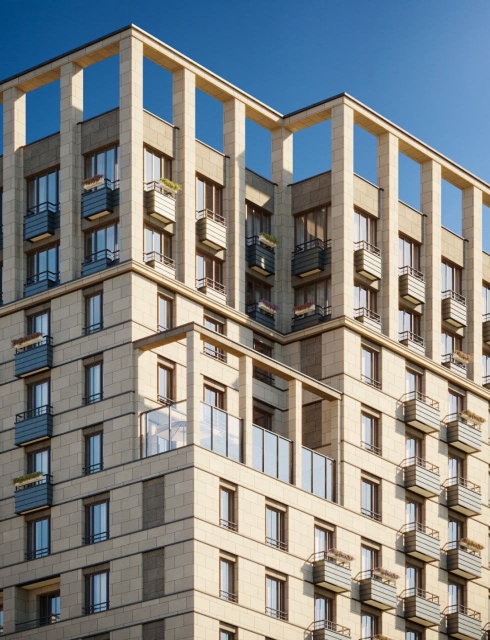 Новый проект на 1-м Иртышском проезде — это два квартала переменной высотности, детский сад и коммерческие павильоны. Разноэтажные секции высотой от 28 до 100 метров объединит стилобат. Фасады домов облицованы керамогранитом с фактурой камня. Кропотливо проработанная архитектура делает здания элегантными и нескучными.