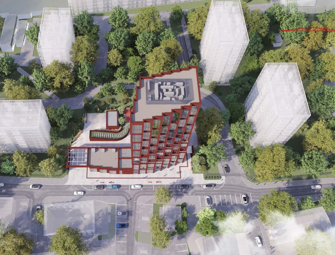 Девелопер Эталон получил ГПЗУ на строительство жилого дома на 7,2 тыс. кв.м., высотой 55 метров. Также в планах построить учебно-образовательный центр. Здания бывшей АТС затянули фальш-фасадом, ранее здесь находились общежития.